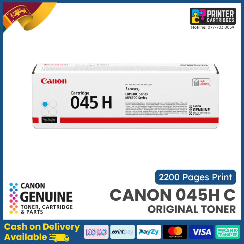 Canon 045H Original Toner Cartridge (Cyan) :Canon i-SENSYS LBP611Cn, LBP612Cdw, LBP613Cdw, MF631Cn, MF633Cdw, MF635Cx, MF632Cdw, MF634Cdw