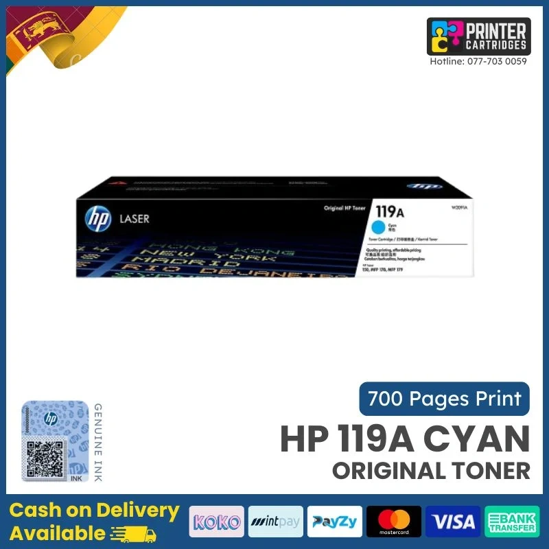 HP 119A Cyan Original Laser Toner Cartridge: 150a , 150nw , 178nw , 179fnw