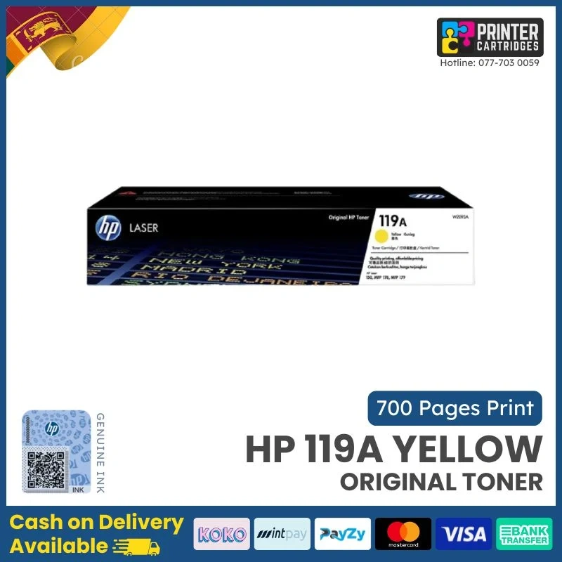 HP 119A Yellow Original Laser Toner Cartridge : 150a , 150nw , 178nw , 179fnw