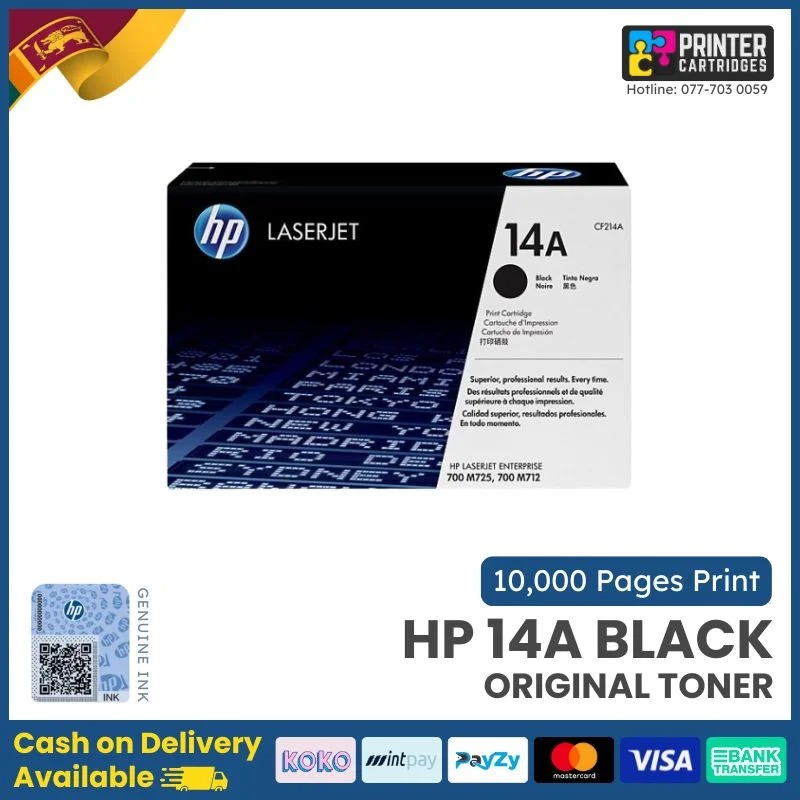 HP 14A Black Original LaserJet Toner Cartridge : HP LaserJet Enterprise 700 M712dn, M712n, M712xh,MFP M725dn, M725f, M725z, M725z
