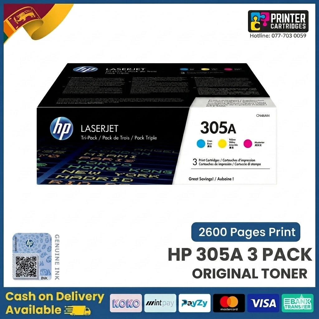 HP 305A 3-pack Cyan/Magenta/Yellow Original LaserJet Toner Cartridges
