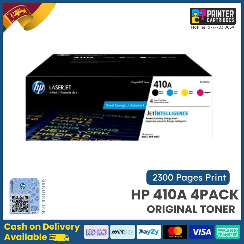 HP 410A 4-pack Black/Cyan/Magenta/Yellow Original LaserJet Cartridges :HP Color LaserJet Pro M452dn, HP Color LaserJet Pro M452dw, HP Color LaserJet Pro M452nw, HP Color LaserJet Pro MFP M477fnw, HP Color LaserJet Pro MFP M477fdn, HP Color LaserJet Pro MFP M477fdw