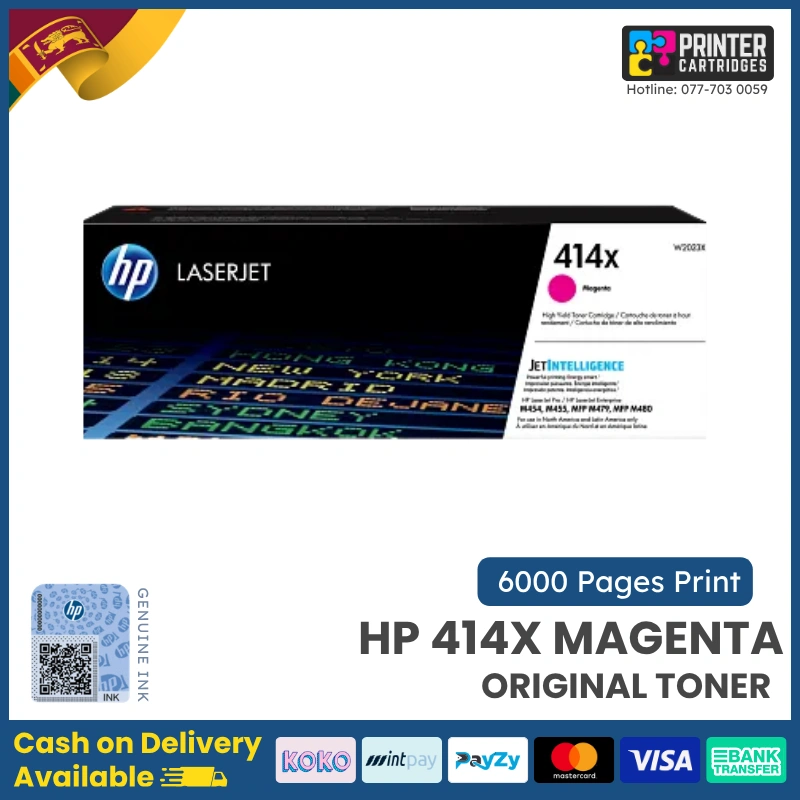 HP 414X High Yield Magenta Original LaserJet Toner Cartridge:HP Color LaserJet Enterprise M455dn, HP Color LaserJet Enterprise MFP M480f, HP Color LaserJet Pro M454dn, HP Color LaserJet Pro M454dw, HP Color LaserJet Pro M454nw, HP Color LaserJet Pro MFP M479fdn, HP Color LaserJet Pro MFP M479fdw, HP Color LaserJet Pro MFP M479fnw