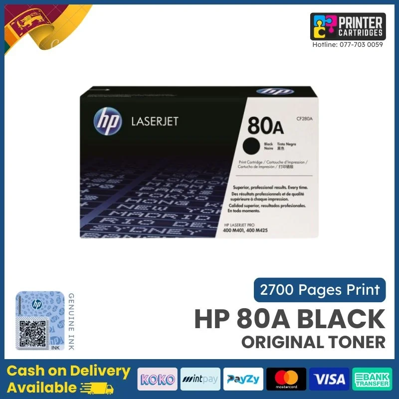 HP 80A Black Original LaserJet Toner Cartridge :  M401n , M401dn , M401dw , M401dne , M425dn